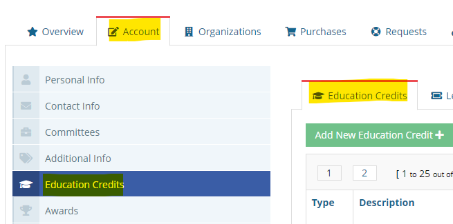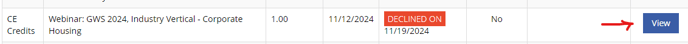 When a credit is declined, there will be a note in your profile indicating why. To view your declined credit, navigate your profile, then select "Account," then "Education Credits," and "Education Credits" again. This will show your transcript.